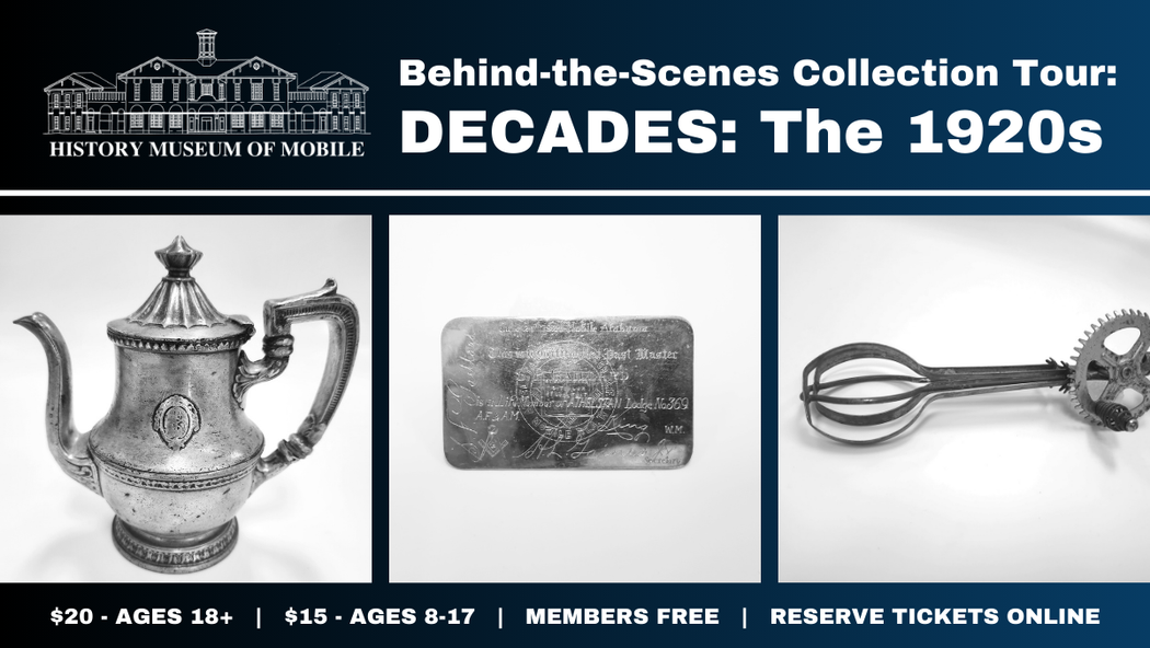 Join the curators at the History Museum of Mobile on Thursday, March 26, 2026 for a behind-the-scenes look at our collection! See inside the vault and learn how curators care for more than 117,000 objects.